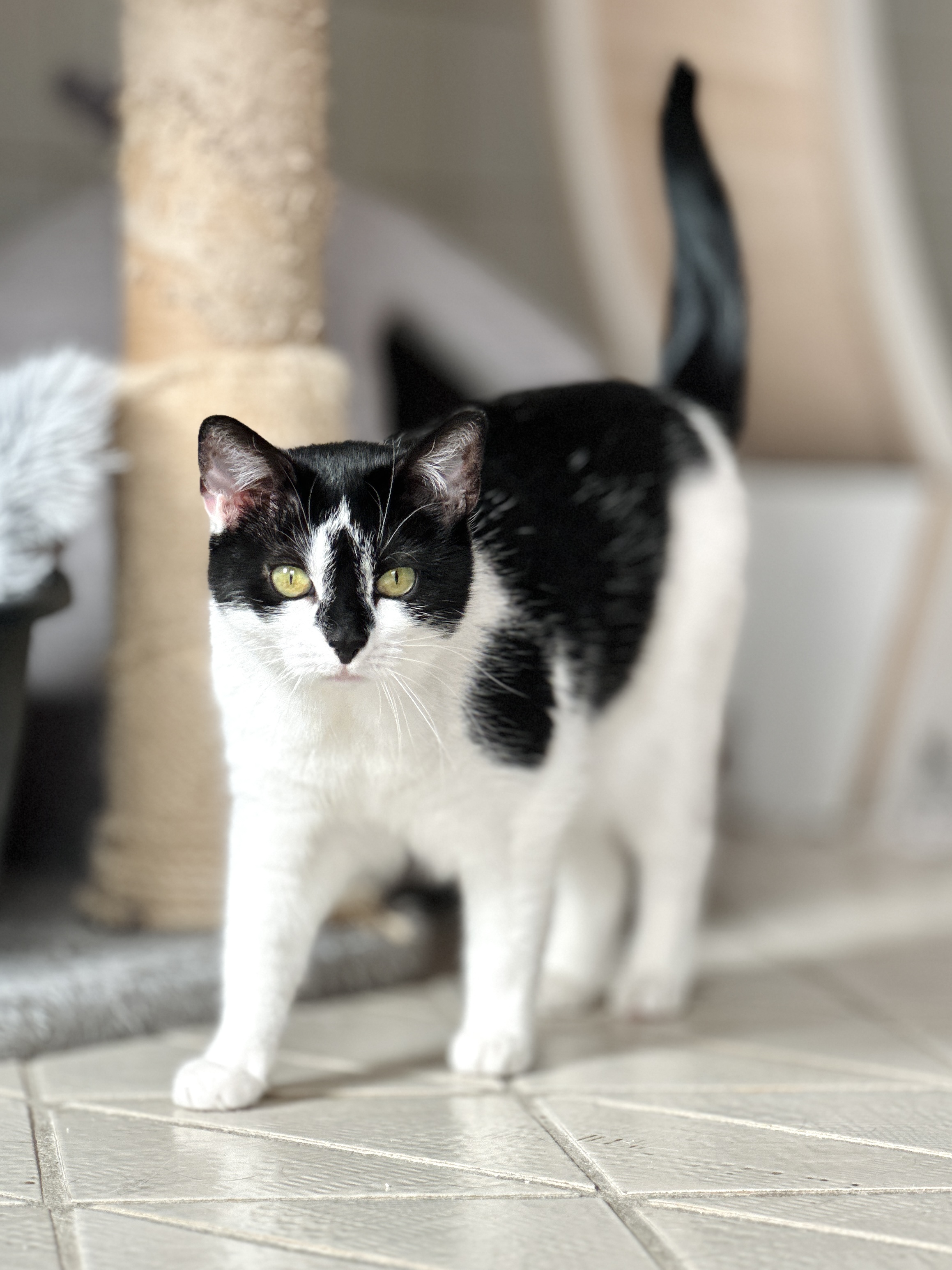 „Stella“ ist eine sehr liebe, neugierige und sehr verschmuste Katze. Sie kam zusammen mit ihrer Freundin „Holly“ und ihrer Schwester „Fina“ ins Tierheim und auch hier sieht man sie täglich miteinander schmusen, kuscheln oder einfach nur mal „Näschen geben“. Alle Drei achten sehr aufeinander und wollen immer sicher gehen, dass es allen gut geht. „Stella“ ist eine sehr verschmuste Katze, die auch gerne mal mit ihren Menschen redet. Manchmal braucht sie einen kleinen Moment mit fremden Menschen, doch ihre Neugierde überwiegt meist und dann kann sie nicht anders, als auch einmal „Hallo“ zu sagen. Sie lebten in ihrem vorherigen Zuhause als Freigänger, was sie auch hier zeigen, denn sie sind sehr gerne in ihrem Außengehege. Da wir „Holly“, „Stella“ und „Fina“ nicht trennen wollen, suchen wir für sie gemeinsam ein neues Zuhause. Sie sind ein eingespieltes Team, was man einfach nicht trennen kann und wir auch nicht trennen wollen. Wir suchen für die Drei ein neues Zuhause in ruhiger Wohngegend, wo sie nach ihrer Eingewöhnung ihren Freigang genießen können. Kinder im neuen Zuhause sollten schon älter sein, da sie es lieber ruhiger haben und nicht mehr viel Trubel brauchen.